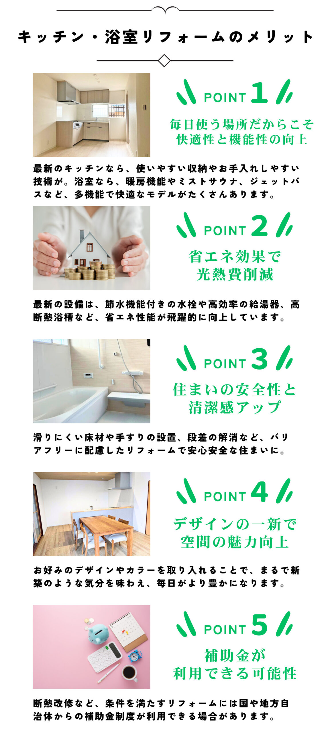 「使いづらい、古いキッチンを新しくしたい!」「寒くなる前にあたたかな浴室にリフォームしたい・・・」という方は今がチャンス!ただいま「【WEB限定】サマーキャンペーン」を実施中です。キッチン・浴室のリフォームをご依頼いただいた方に、最大25万円の割引クーポンを進呈いたします。