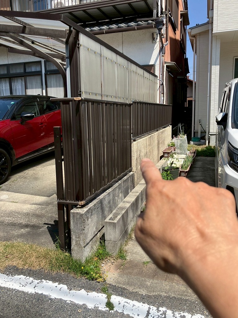 フェンスの一部とゲート柱を解体して撤去します。