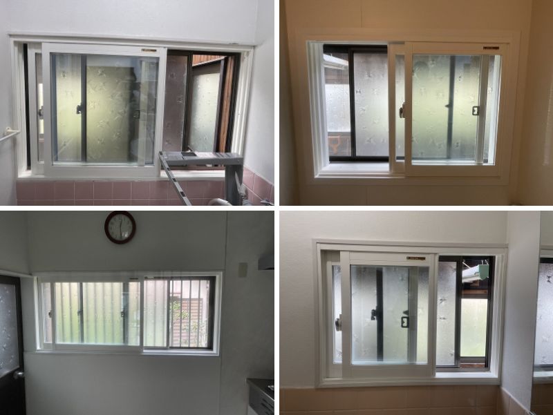 洗面所、浴室、キッチン、トイレの窓に内窓を設置しました。
