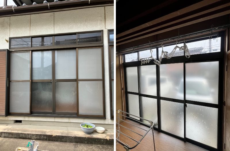 リビング掃き出し窓は、内窓を設置し、フィルムを貼りました。