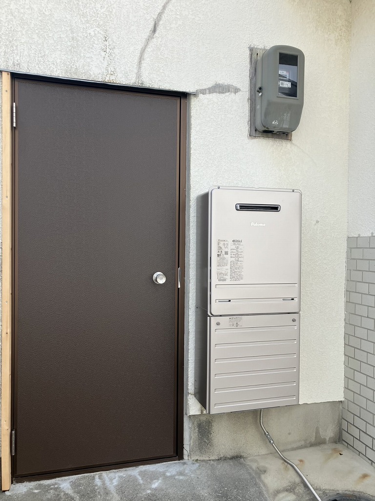 勝手口のドアの交換、給湯器の交換も行います。