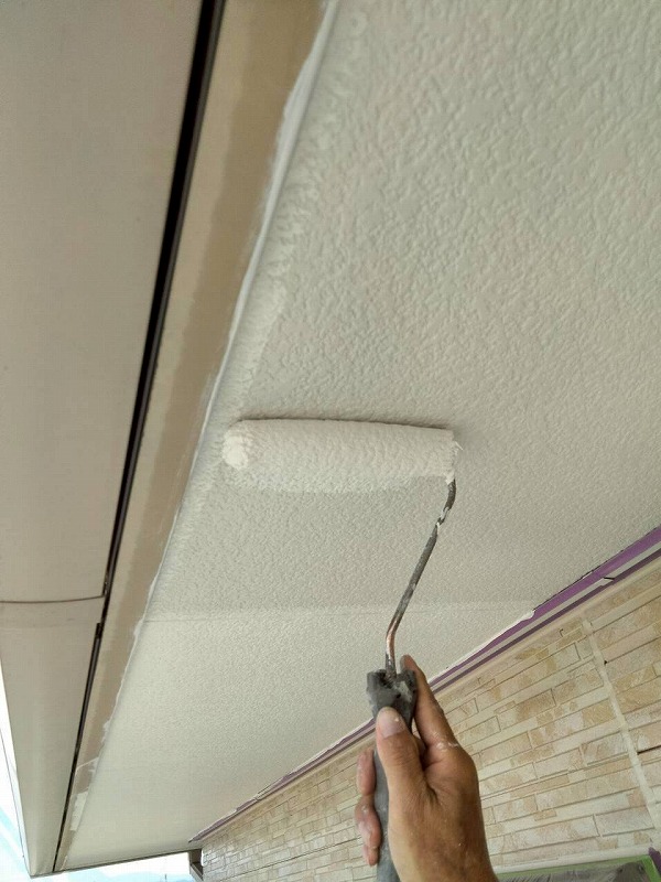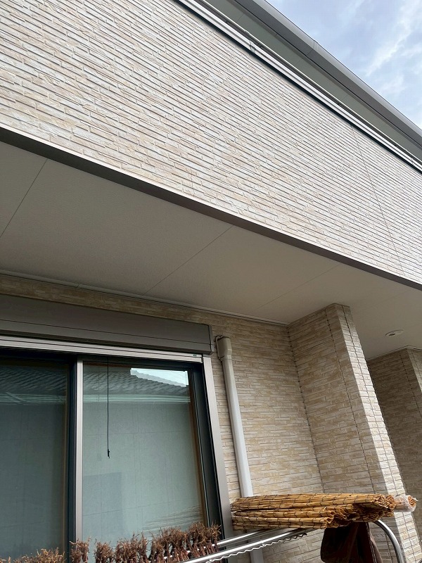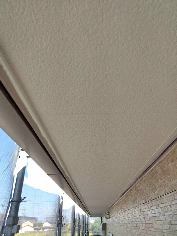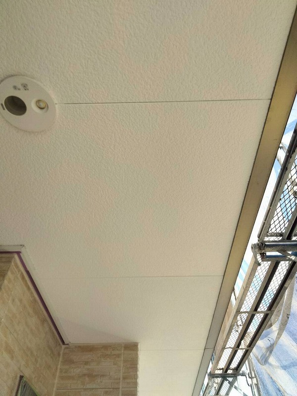 軒天に大きな劣化はありませんが、表面に汚れが見られました。劣化すると湿気を含みやすい状態になりますので、洗浄で汚れを落としてから塗装して、保護しておくことをおすすめします。