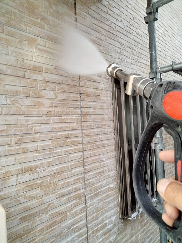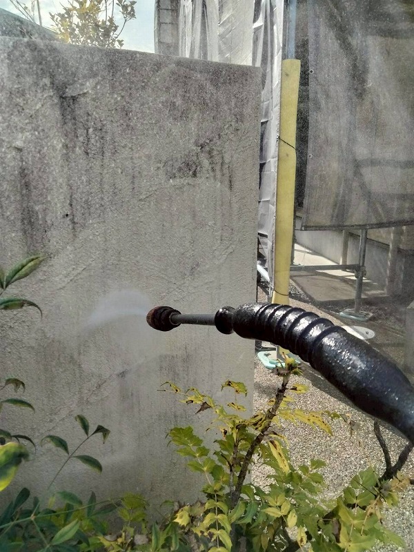 外塀も塗装します。洗浄して綺麗な下地を作ります。