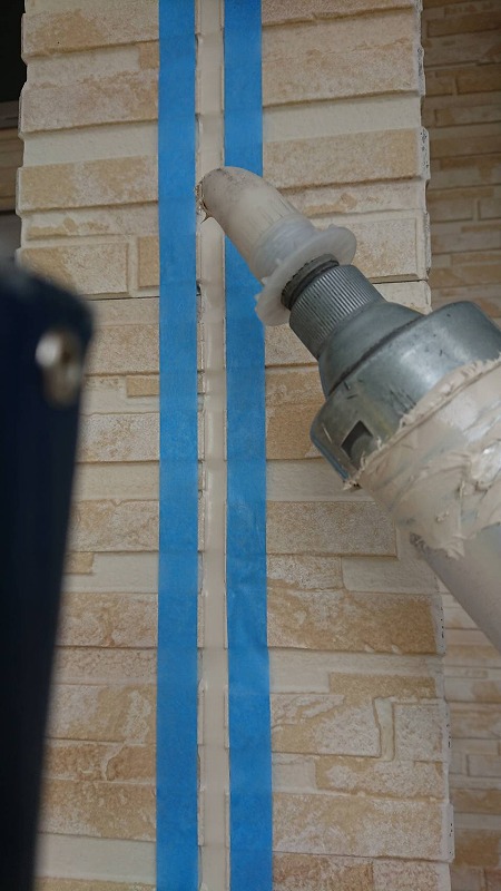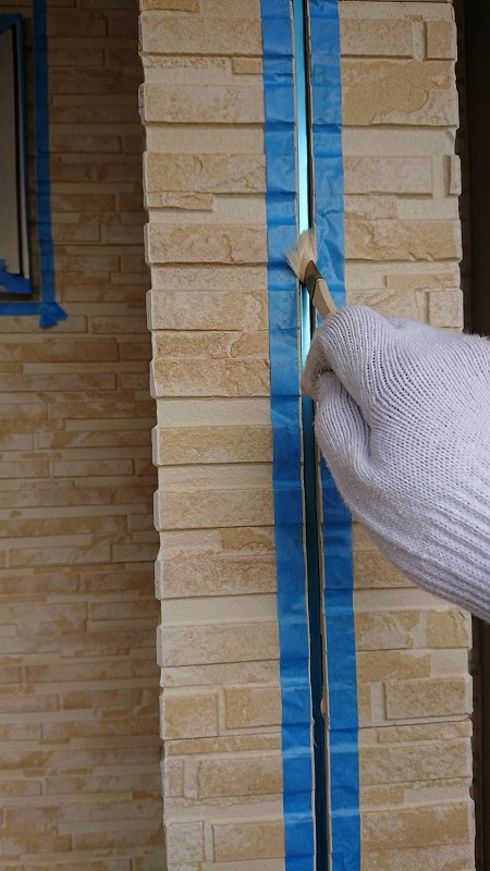 シーリング工事です。一旦シーリングを撤去してからプライマーを塗ります。