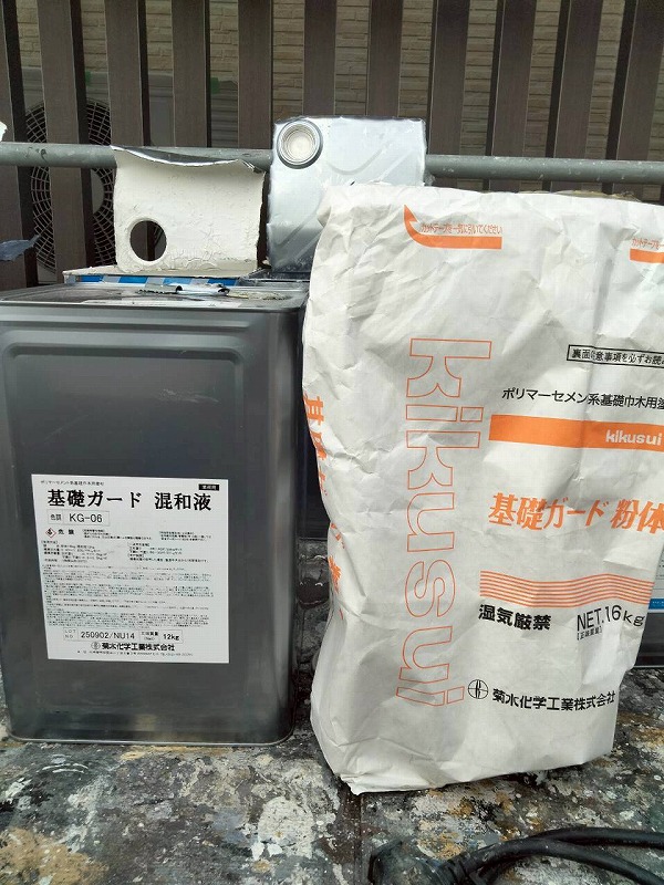 今回は、基礎巾木塗装も行います。塗料は、基礎ガード【KG-06】を使います。