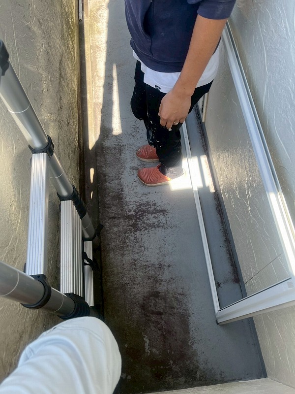 ベランダ塗装です。ウレアックスHGで塗装します。まずは下塗りです。