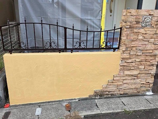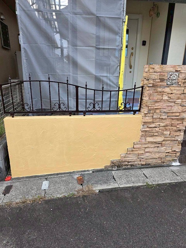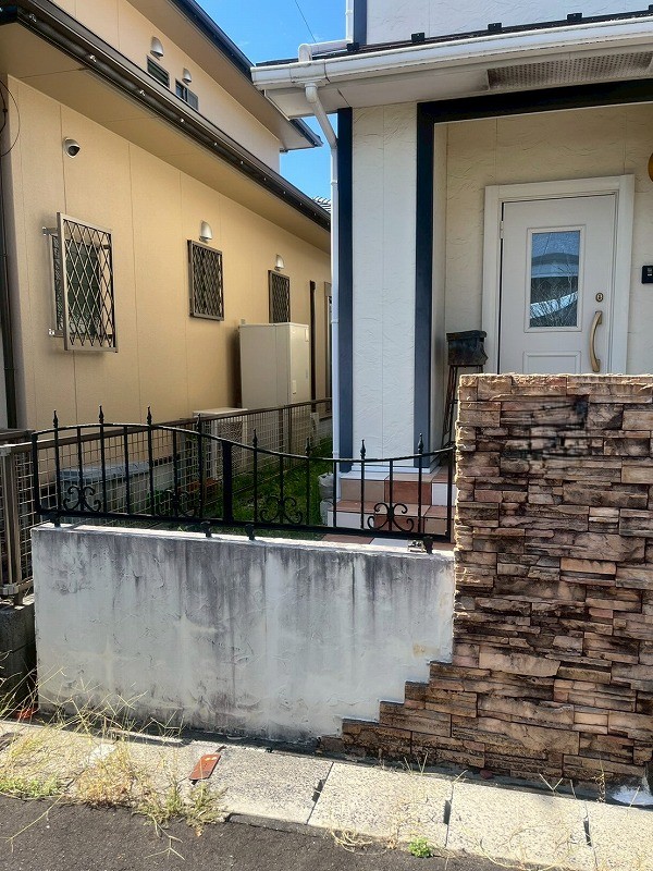 外堀と鋳物フェンスも塗装します。汚れが見られますので洗浄で綺麗にしてから塗装します。