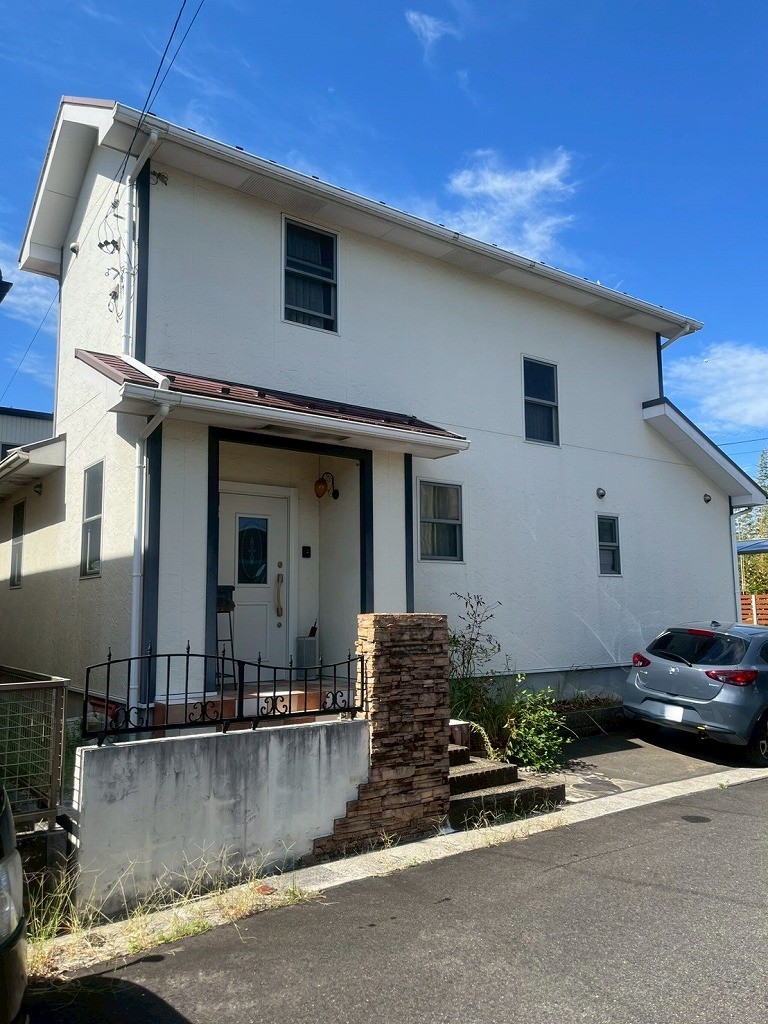 外壁・屋根塗装を行いました。外壁は、スーパームキコート【JC-19】です。ベージュ系の色です。屋根は、スーパームキコートルーフ【J15-20B】です。色はブラウン系です。付帯部は、フタイムキコートホワイトで塗装しました。