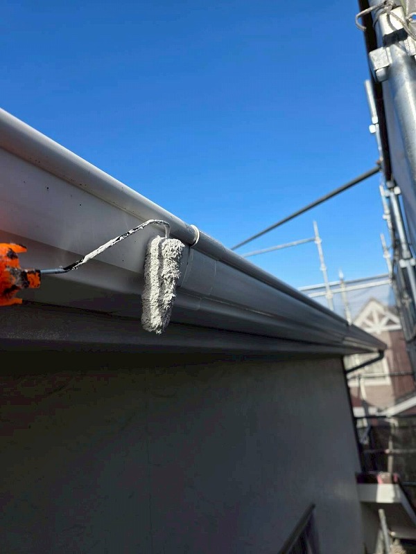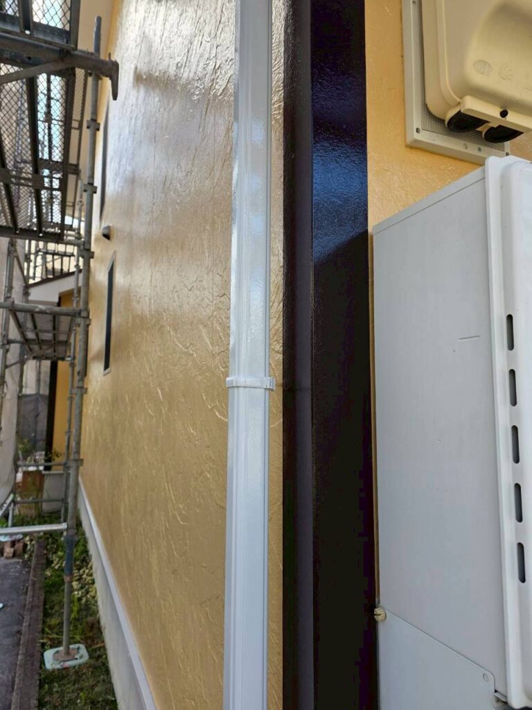 幕板はフタイムキコートブラウン、樋などの付帯部はフタイムキコートホワイトで塗装しました。