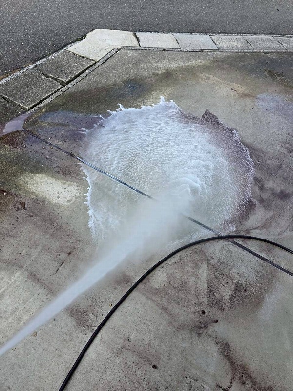 土間も外壁や屋根同様、バイオ洗浄にて汚れをしっかりと落としていきます。