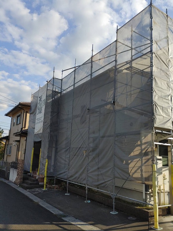 物置やカーポートなどがある場合、足場を空中に浮かしたり、移動や脱着などをすることがあります。今回はカーポートのポリカ屋根の脱着が必要となります。