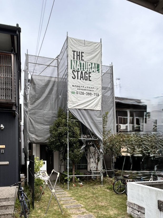 足場が近隣様に近いので、ご近所様へしっかりとご挨拶をさせて頂いてから着工いたします。