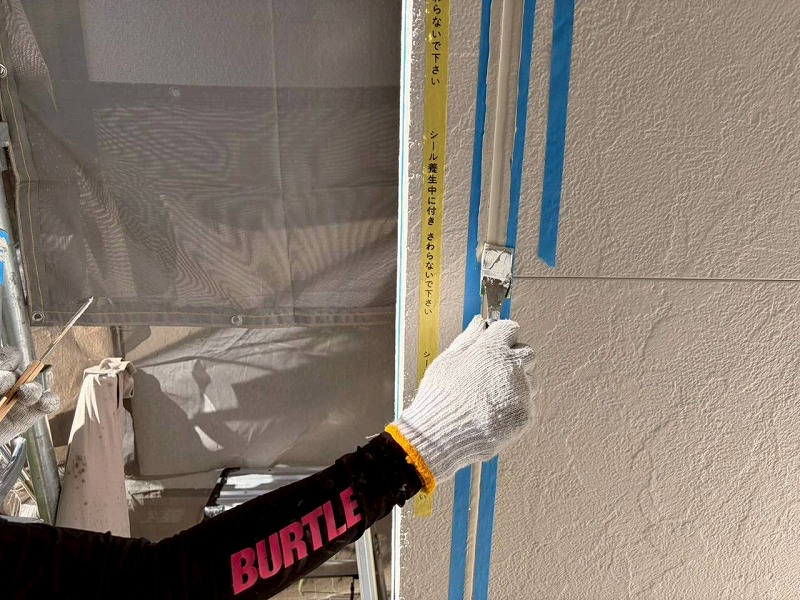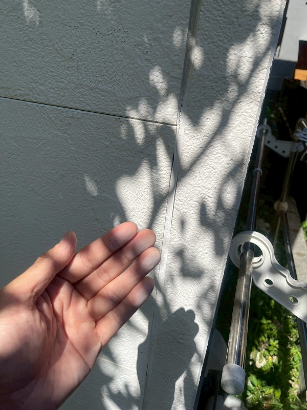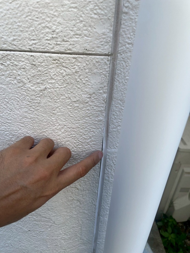 外壁の目地部分のシーリングが劣化して、硬くなったりひび割れたりしています。このままでは目地部分から雨水が侵入してしまいます。古いシーリングは撤去して新しく打ち替える、若しくは増し打ちで補修することができます。