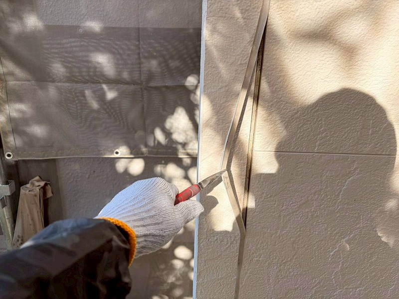 シーリング工事です。まずは劣化したシーリングを撤去します。