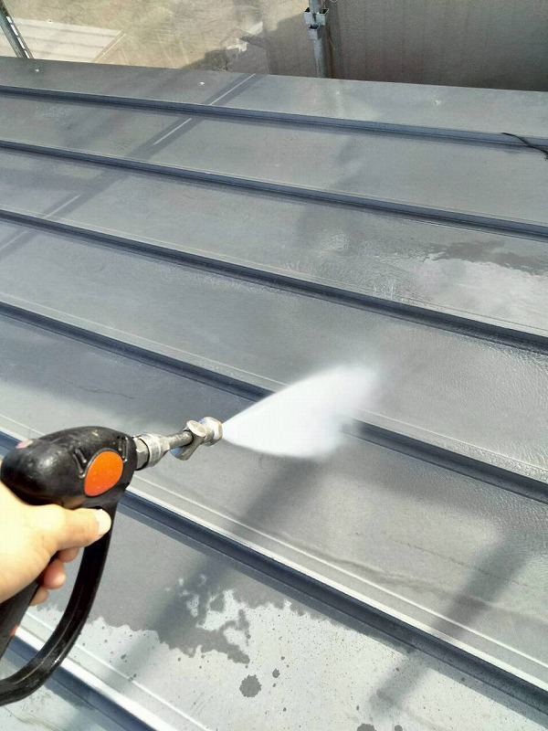 屋根の洗浄です。屋根は今回塗装しませんが洗浄のみしていきます。