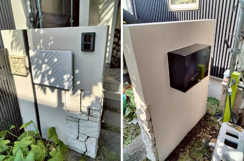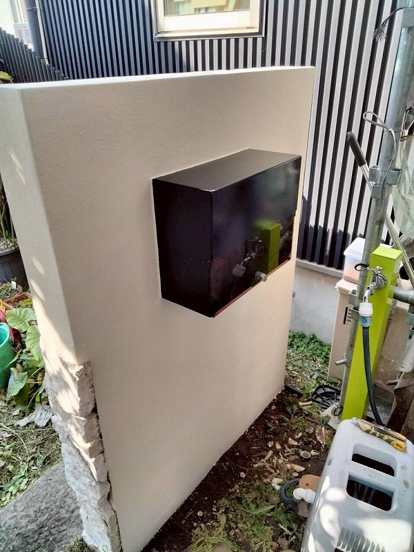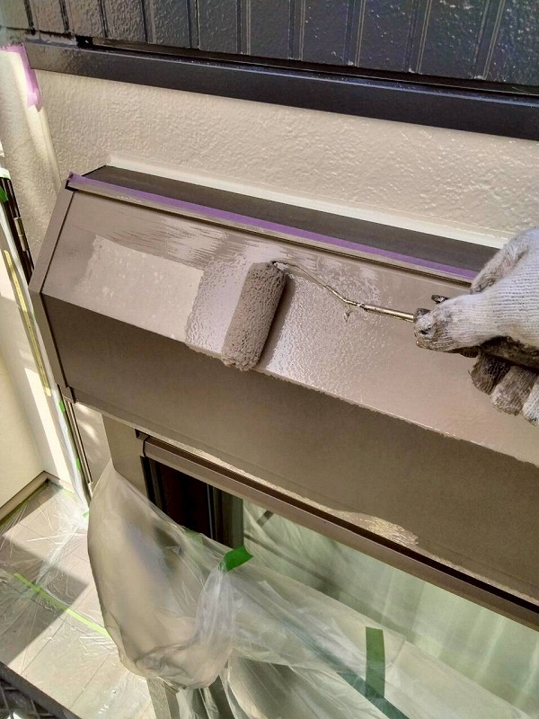 ポストと外塀の塗装を行いました。外塀は、ガイナスーパークリーン【22-85b】で塗装しました。