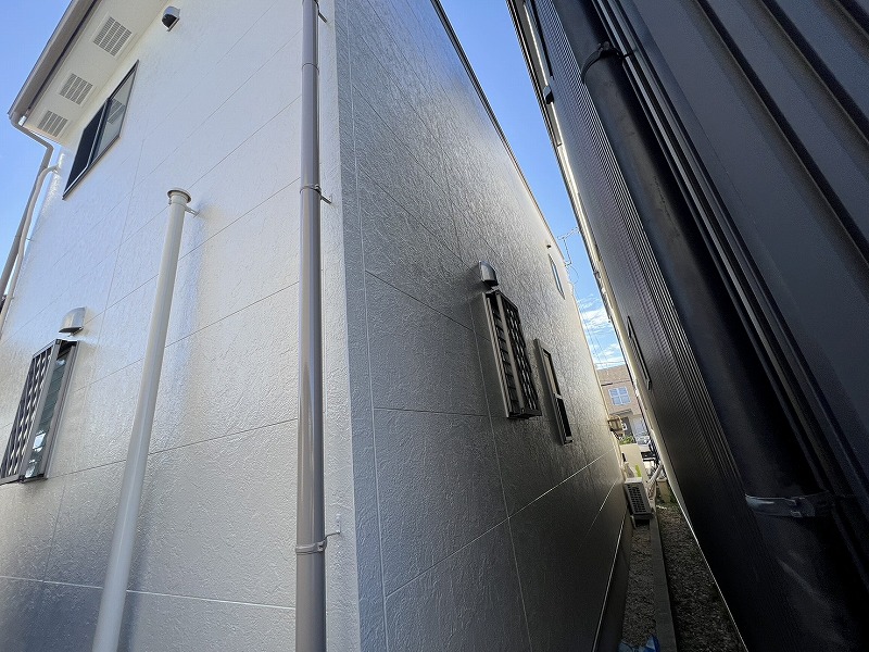 塗料は、当社推奨の高耐久スーパームキコートで外壁と外塀を除く付帯部を塗装させていただきました。施工前は外壁にチョーキングや汚れなどが見られましたが、今回塗装したことにより新築時のようにきれいな美観を取り戻しました。