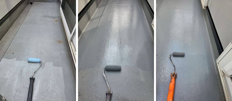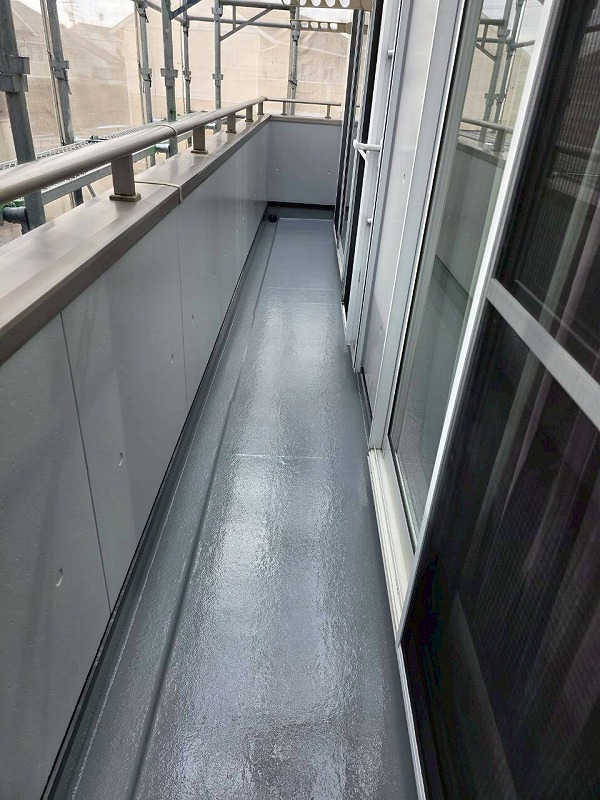 ベランダ塗装です。ウレアックスHGで下塗り・中塗り・上塗りと行いました。