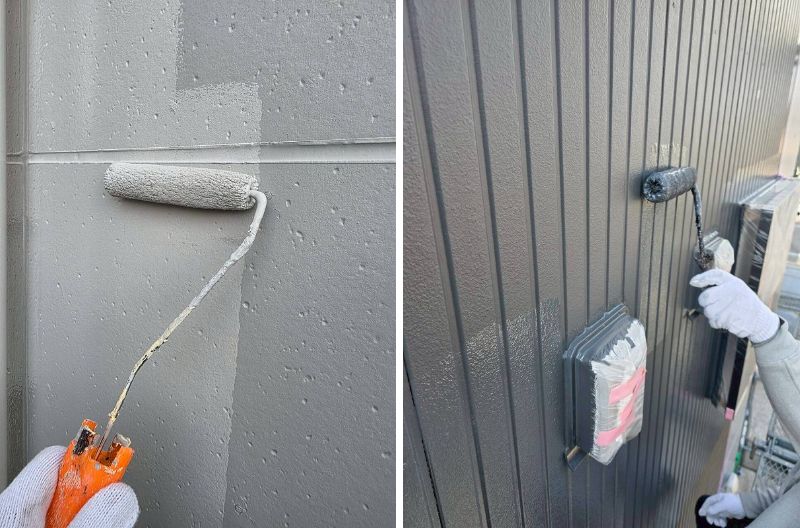 グレーの外壁はスーパームキコート【JC-21】、黒色の外壁は【JC-29】で塗装しました。