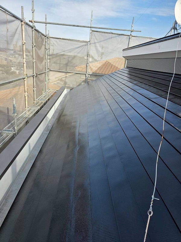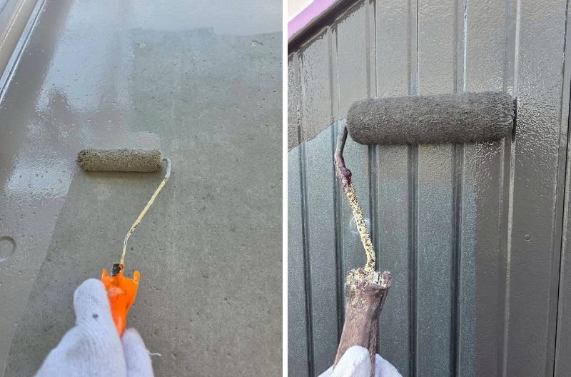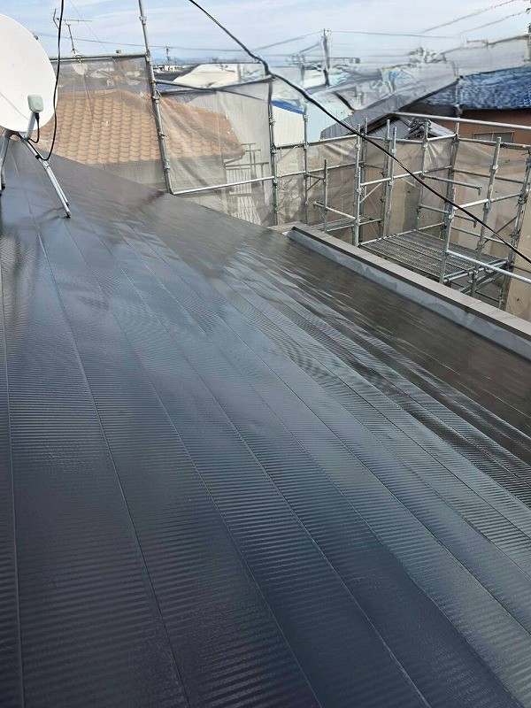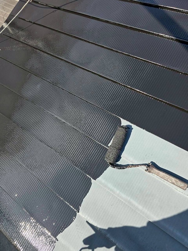 屋根塗装です。スーパームキコートルーフのブラック系【JN-10】で塗装します。