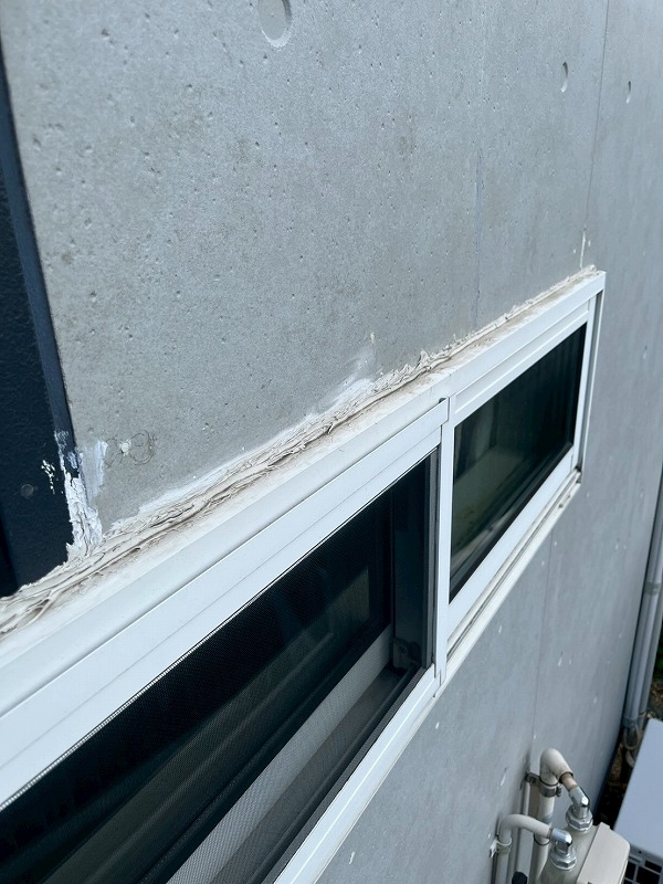 サッシ周りのシーリングが劣化しています。特にサッシ周りは雨漏りの原因になりやすい場所ですので、シーリングを増し打ちしておく必要があります。