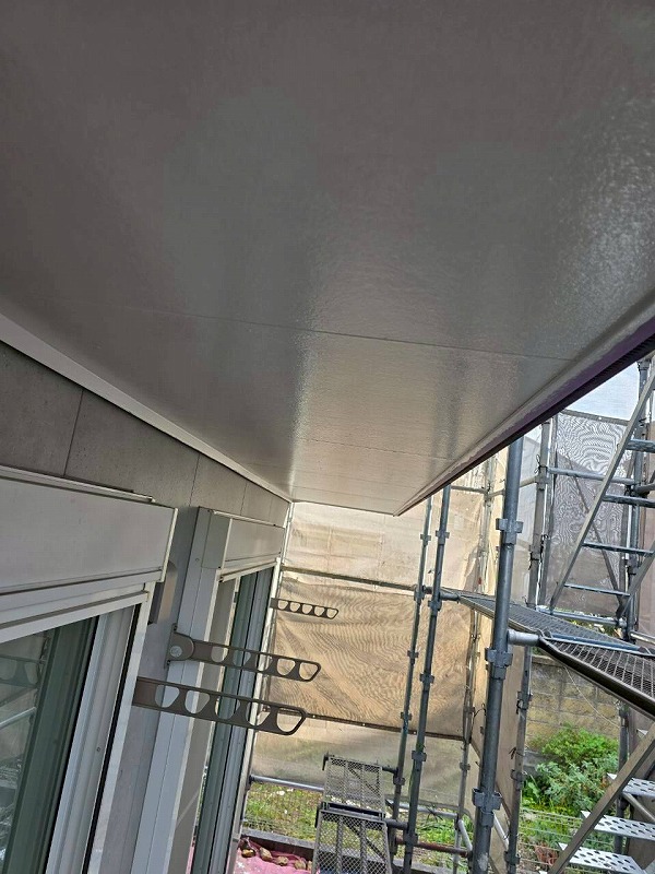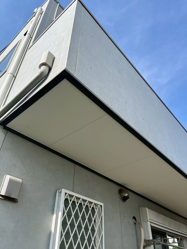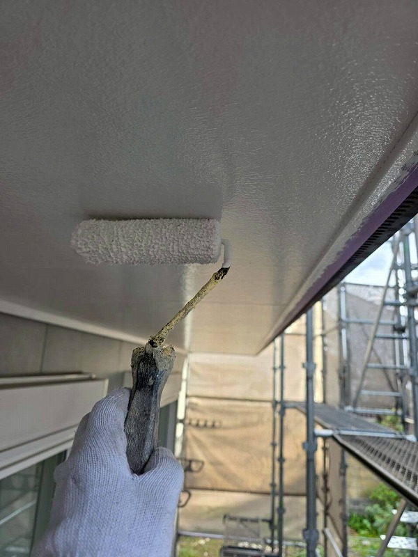 軒天は、大きな劣化はありませんが、表面に汚れが見られました。劣化すると湿気を含みやすい状態になりますので、洗浄で汚れを落としてから塗装して、保護しておく必要があります。