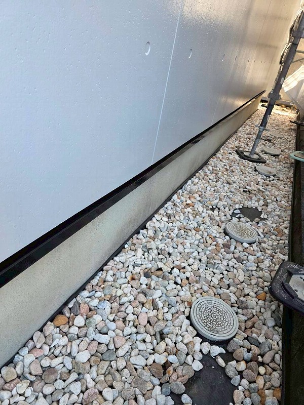 土台水切りなどの付帯部は、フタイムキコートブラックで塗装しました。