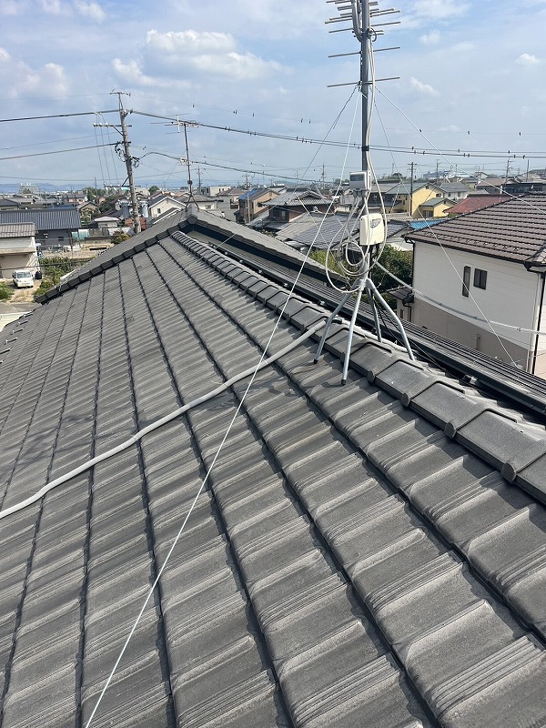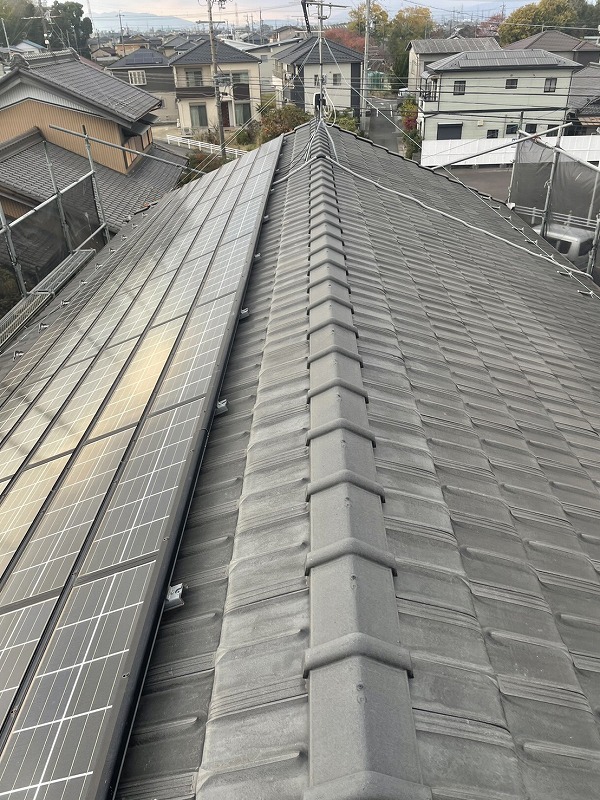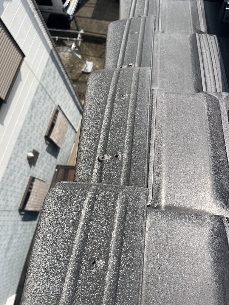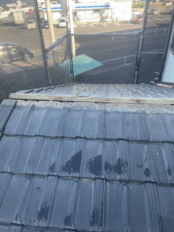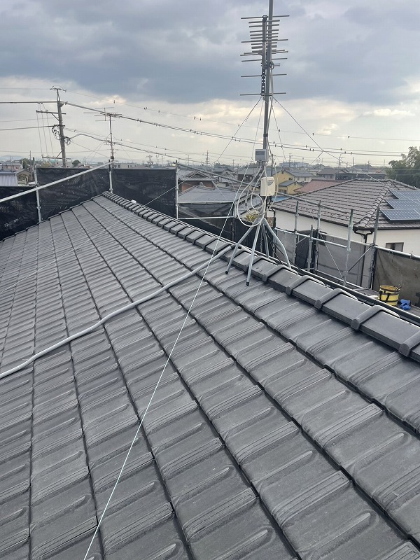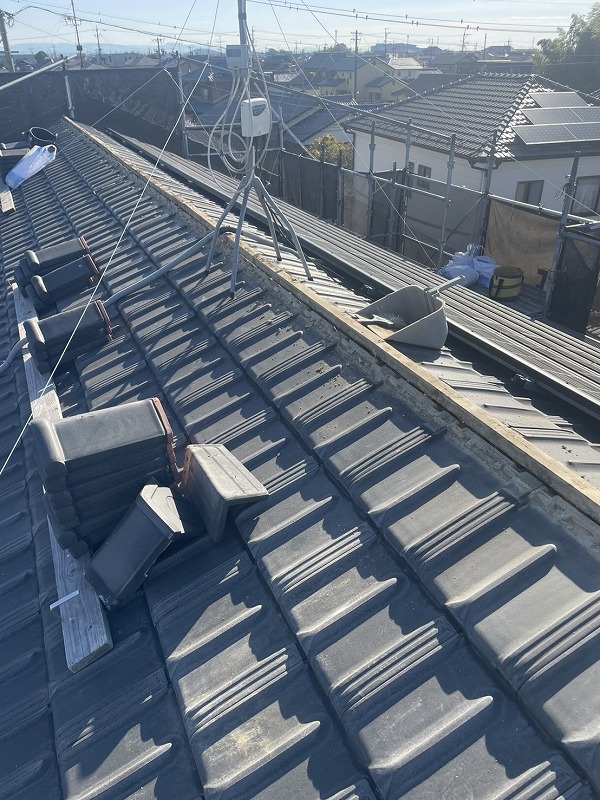 今回は、棟の工事はハイロール施工をさせていただきました。ハイロール施工では漆喰が不要のため、棟重量の大幅な軽量化が実現します。建物全体への負担が減り、地震時の揺れや建物への負荷が軽減され、耐震性が向上します。