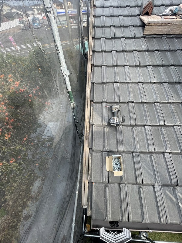 また、袖瓦釘をビスに交換しました。ビスは表面に螺旋が刻まれていて、留め付けた部分が緩みにくくなります。今回ビスに交換したことで瓦が浮いてくる心配が減ったかと思います。