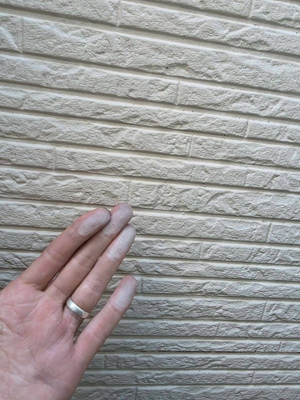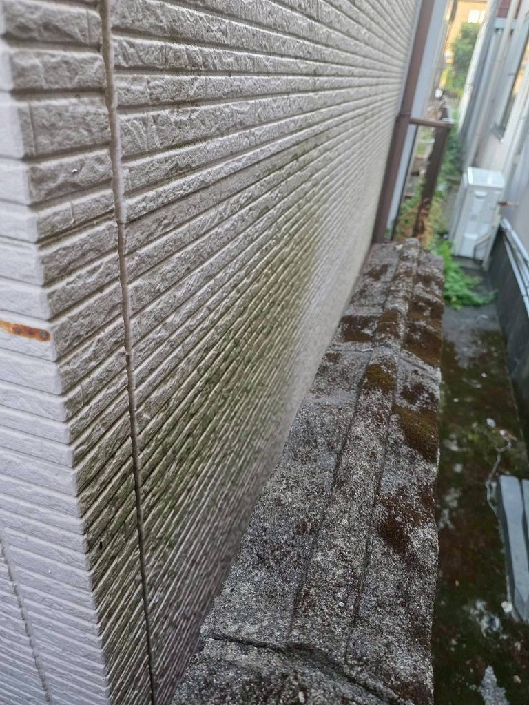 外壁はサイディング、屋根材はカラーベストです。外壁は、コケの発生とチョーキングが見られました。防水効果が失われているサインです。外壁塗装によるメンテナンスが必要です。