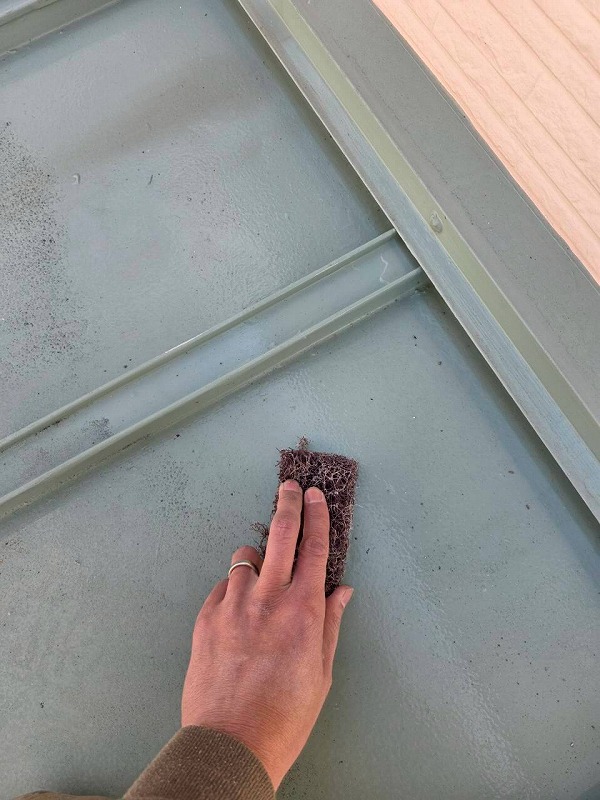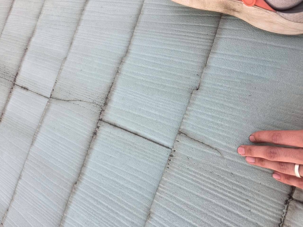 屋根はクラック(割れ)が見られました。クラック部分は補修して塗装させていただきます。