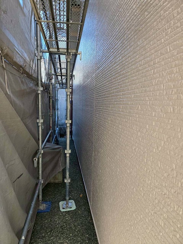 安全作業用足場設置工事:住宅用ビケ足場、東西南北4面、ネット養生含む、屋根塗装用足場延伸(昇降階段含む)