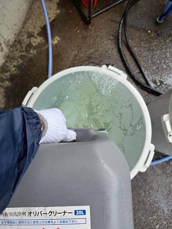 バイオ洗浄:水養生→洗浄液散布→高圧洗浄
