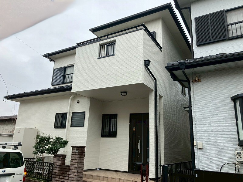 外壁・屋根・付帯部とも当社推奨の高耐久スーパームキコートシリーズで揃えました。紫外線に強く耐候性の高いスーパームキコートシリーズですので、今後長くきれいな家を保つことができます。
