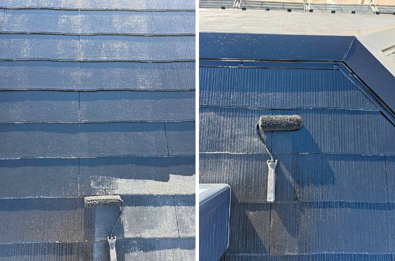 屋根塗装です。屋根はスーパームキコートルーフ【JN-10】で塗装します。