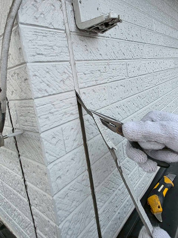 シーリングです。まずは劣化したシーリングを撤去します。