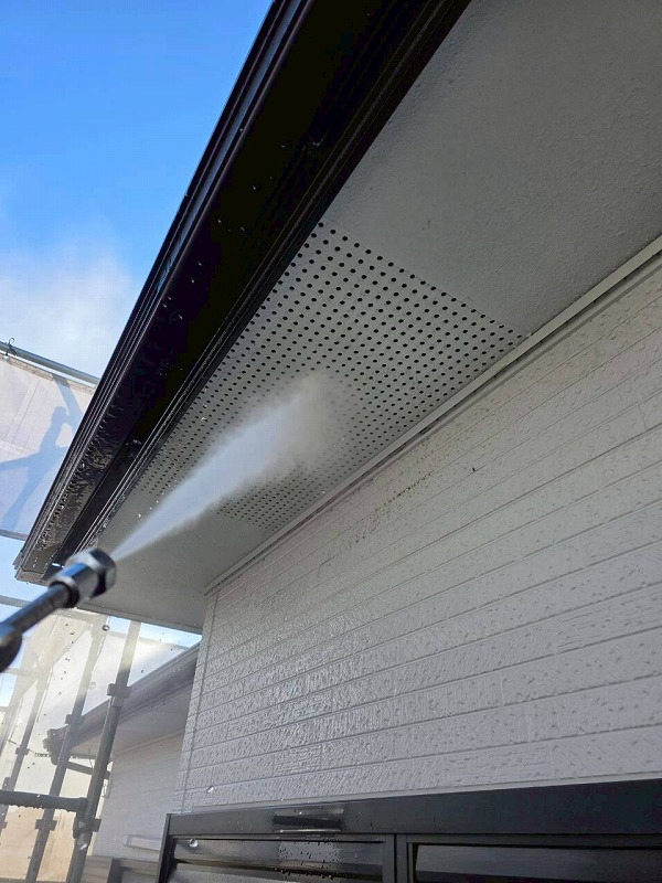 外壁や軒天の汚れやカビなどをきれいにしていきます。