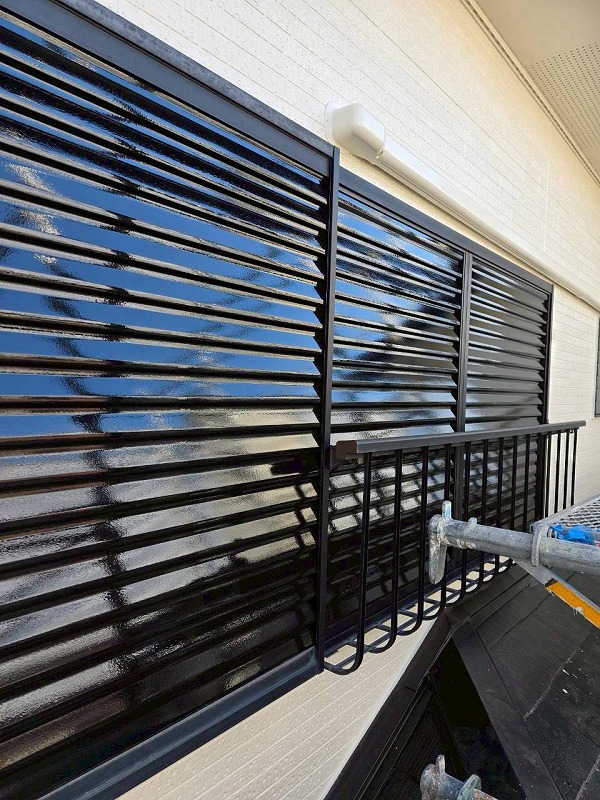 雨戸の塗装です。他の付帯部と同様、フタイムキコートブラックで塗装しました。