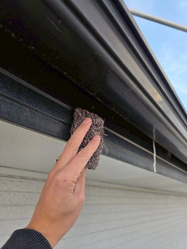付帯部塗装です。まずはケレンをして下地を作ります。