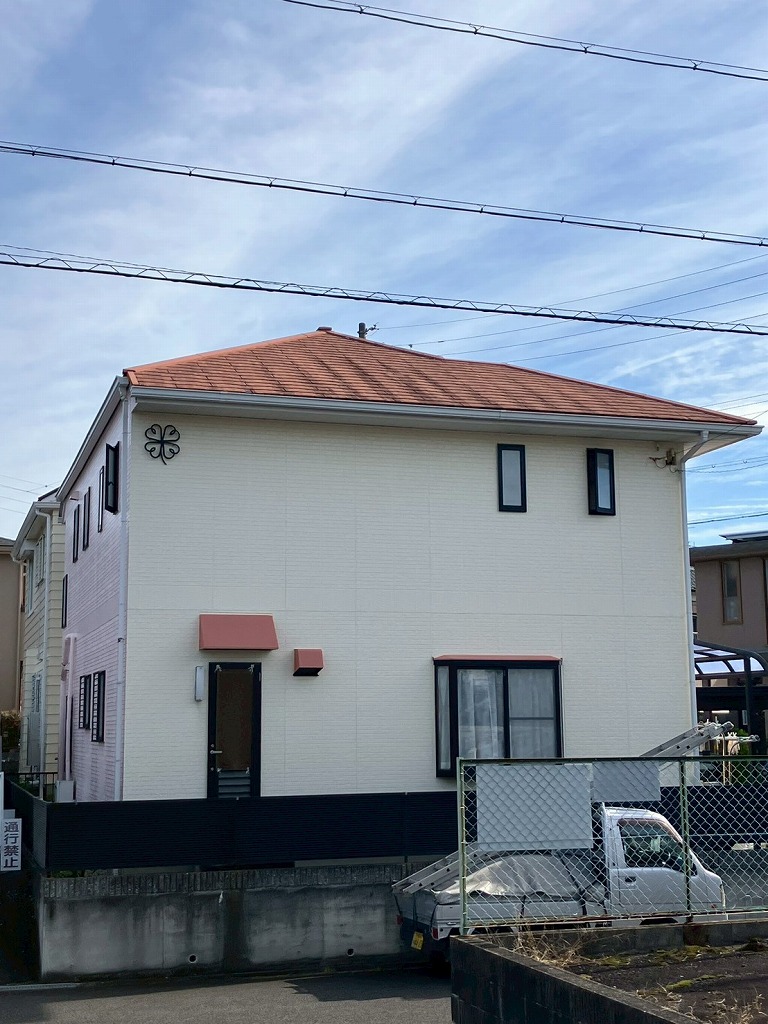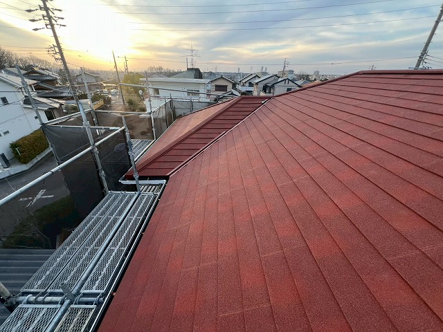 屋根は、屋根カバー工事を行いました。屋根カバー工法は、屋根塗装に比べて、耐久性・防水性・断熱性が向上するというメリットがあります。
