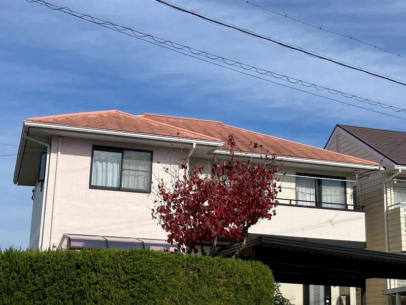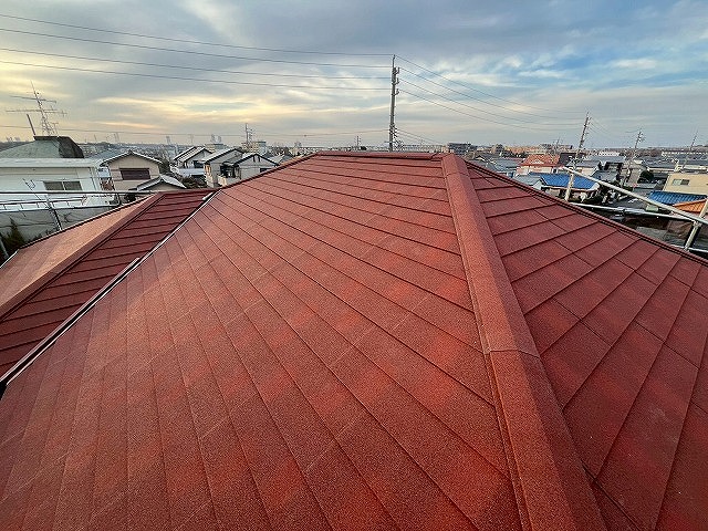 屋根カバー工事を行いました。屋根は施工前には色あせなどが見られましたが、屋根カバー工事により新築のようにきれいになりました。