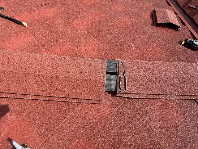 フラットベンツを取付けました。フラットベンツとは、円錐形の通気材が特徴的な棟換気材です。