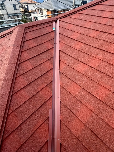 屋根の谷部も板金施工しました。