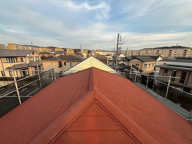 使用した屋根材はJメタルルーフです。家の屋根は外観デザインだけでなく、耐久性や機能性も重要となりますが、Jメタルルーフは軽量性・耐久性・デザイン性に優れた次世代の屋根材です。これから長く住まわれるご自宅のメンテナンスに最適かと思います。