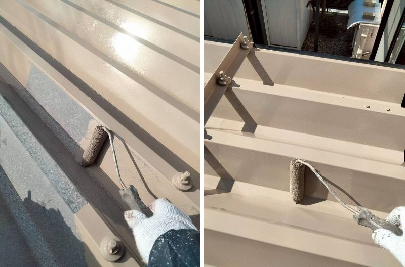 その後塗装します。スーパームキコートルーフで塗装します。下塗りと上塗りの2回塗りです。