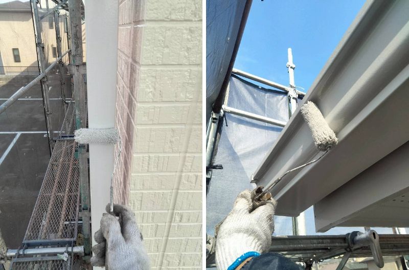 雨樋の塗装です。付帯部専用のフタイムキコートホワイトで塗装します。