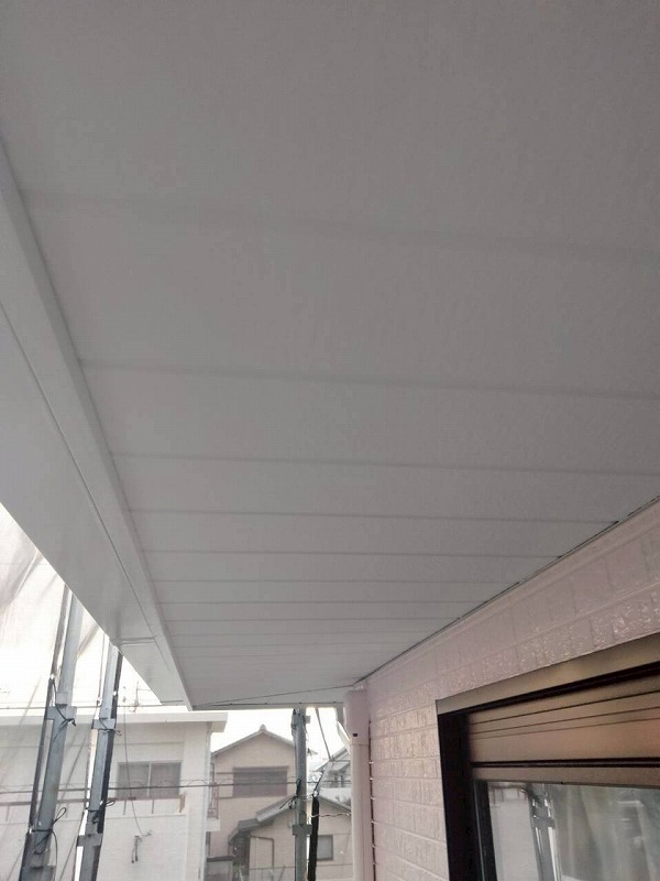 軒天は水性通気塗料で塗装しました。