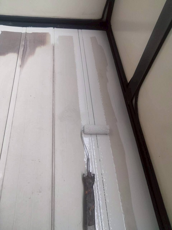 ベランダデッキの塗装です。フタイムキコートホワイトで塗装します。