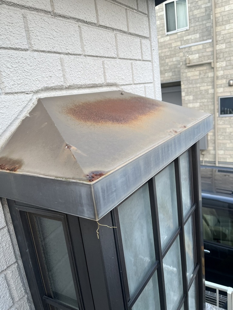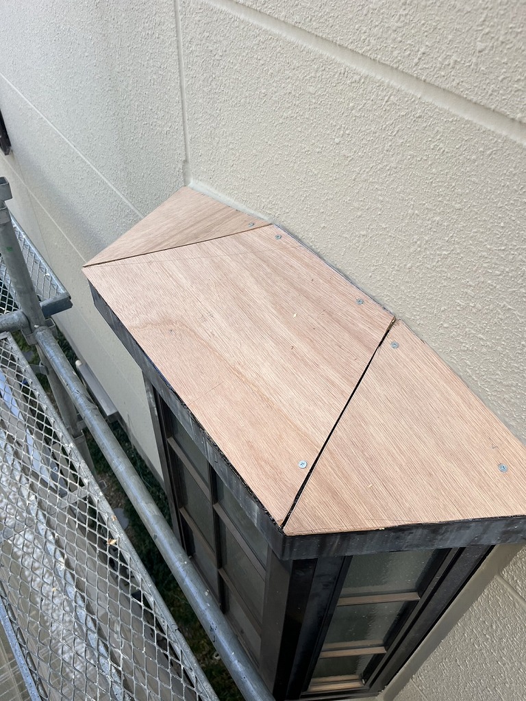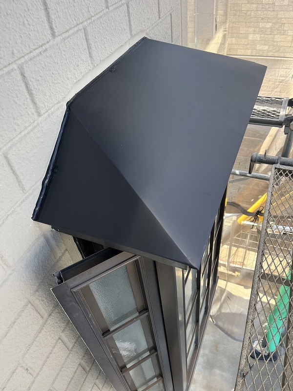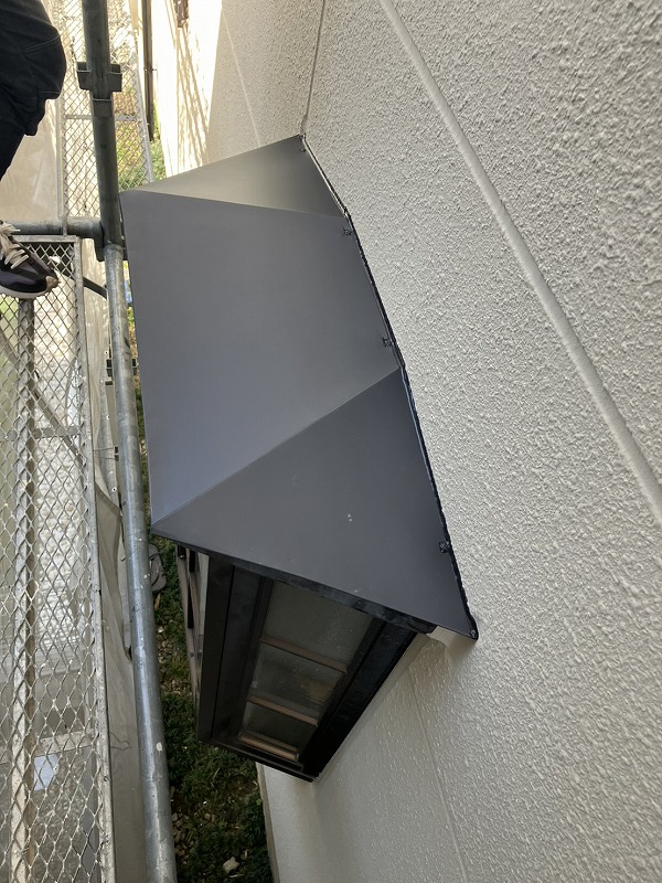 外壁塗装に併せて、出窓上部の板金カバー工事もお任せいただきました。外壁塗装と合わせて施工することで新たに足場を設置する必要がなく施工できます。