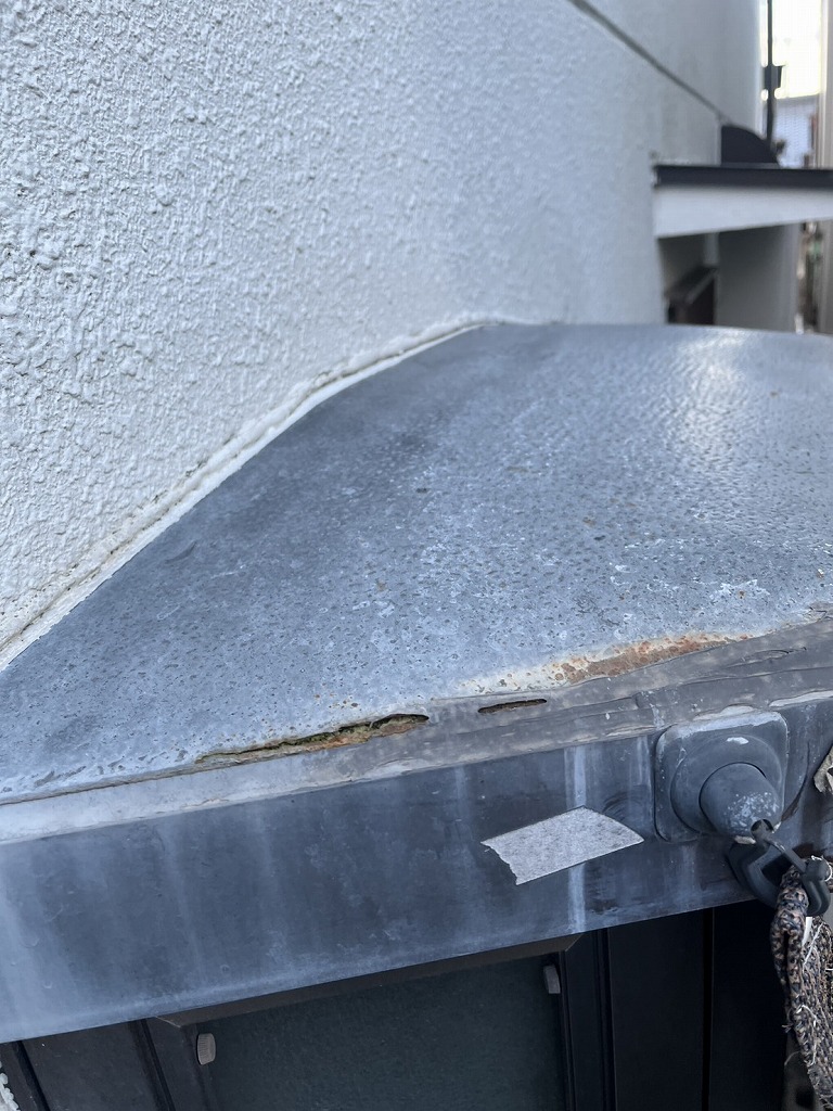 板金のサビ・腐食(経年劣化)により板金表面の塗装が剥がれ、金属が露出してサビが発生します。サビが進行すると穴が開き、そこから雨水が浸入します。